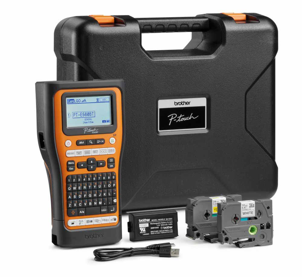 Brother PT-E560BTVP märkmaskin, väska, 2 st tejper, uppladdningsbart batteri, USB sladd