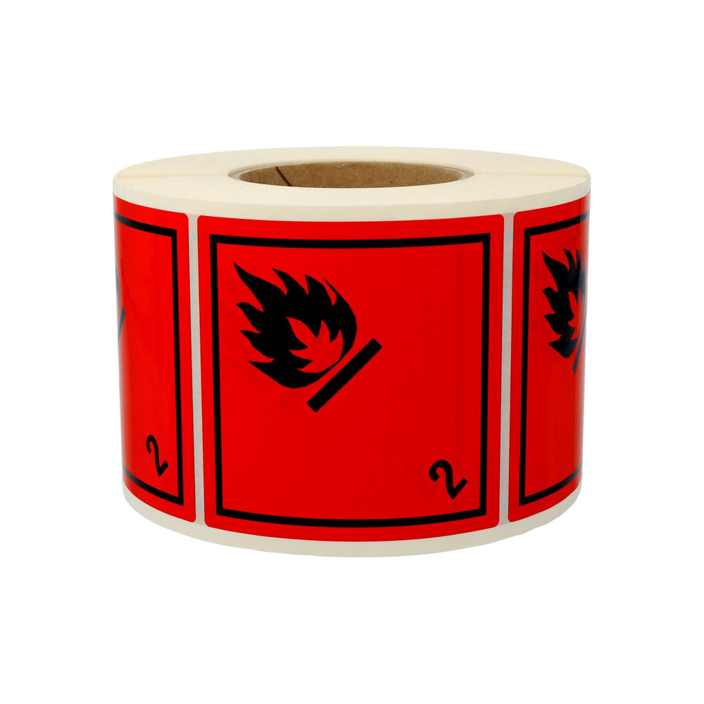 Pris från 392,00/rl, Farligt godsetikett klass 2.1 100x100 mm röd PP permanent 500 st/rl